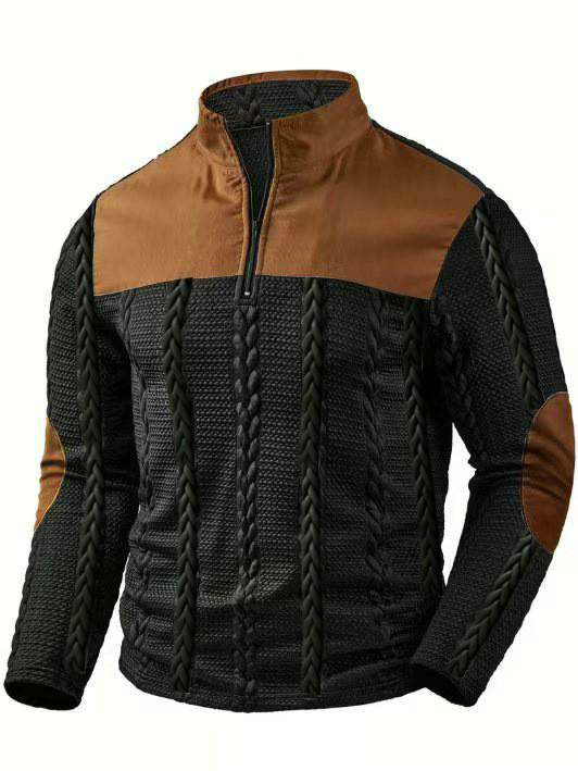 2026 Spring/Autumn Men’s Cross border European Men’s Stand up Collar Long Sleeve Men’s Casual Outdoor Hoodie Jacquard Knitted Sweater